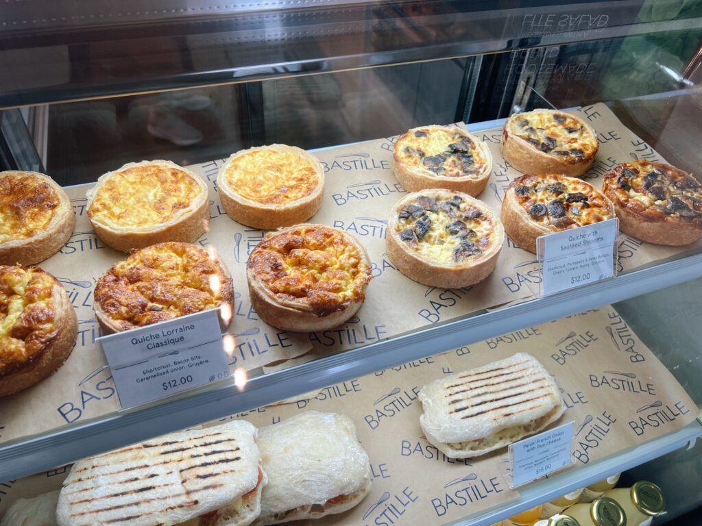 Stepping inside, you’re greeted by the comforting aroma of freshly baked bread and coffee. The display counter is a feast for the eyes: golden pain au chocolat, flaky croissants, and almond cream croissants generously topped with toasted almonds. For those looking for something more savoury, the quiches — Quiche Lorraine Classique or Quiche with Sautéed Shiitake — are hearty options perfect for brunch or a light lunch.