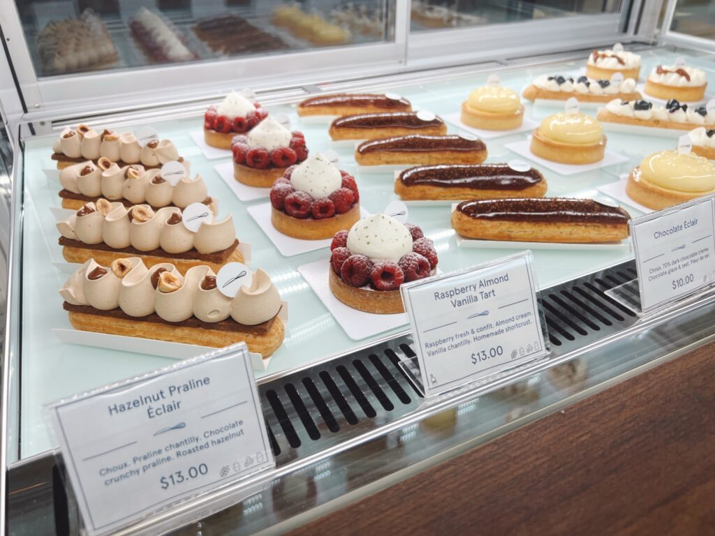 If you have a sweet tooth, the dessert counter will stop you in your tracks. Rows of delicate éclairs, raspberry almond tarts, and glossy lemon tarts line the case, each one crafted with a precision that speaks of true French pâtisserie tradition.